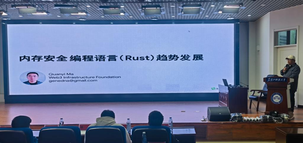 联想云原生研发总监张文杰、蚂蚁集团密码学专家张成龙、华为云产品总监汪洋、华为2012试验室高级技术专家马全一分别以《云原生领域现状及发展机遇》《基于铜锁开源社区的产学研实践经验》《基于云原生的平台工程趋势发展》《内存安全编程语言(Rust)趋势发展》为题进行了专题报告,为师生分享了各自的研究成果。