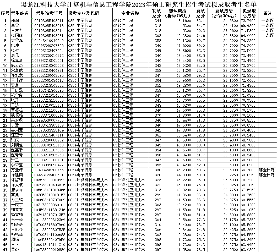 2023年全国硕士研究生招生考试beats365亚洲版官网计算机公司拟录取名单公示